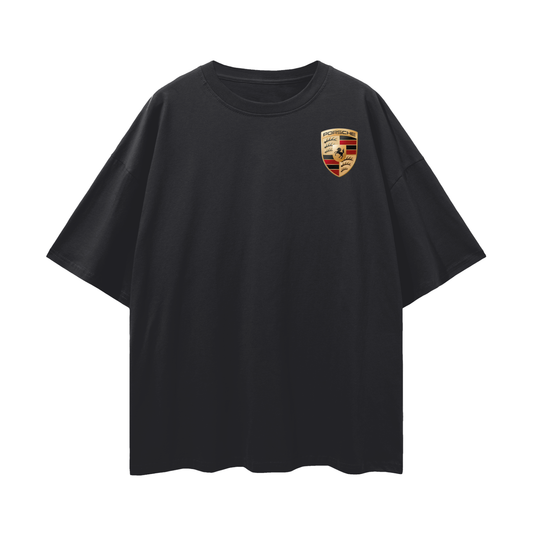 NEED MONEY FOR PORSCHE LOGO FRONT Streetwear Loose Drop Shoulder T-Shirt