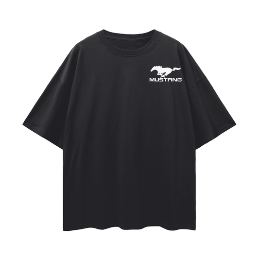 NEED MONEY FOR MUSTANG LOGO FRONT Streetwear Loose Drop Shoulder T-Shirt